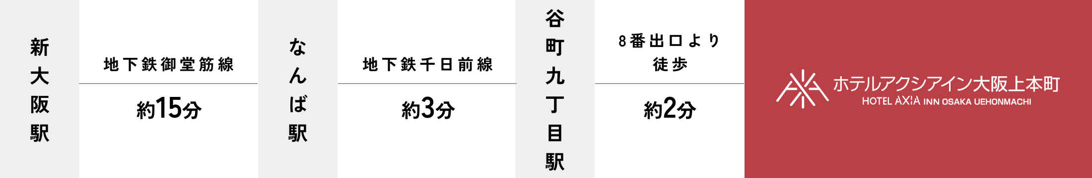 近鉄大阪上本町駅より徒歩2分地下鉄谷町九丁目駅8番出口より徒歩2分空港リムジンバス乗り場より徒歩2分